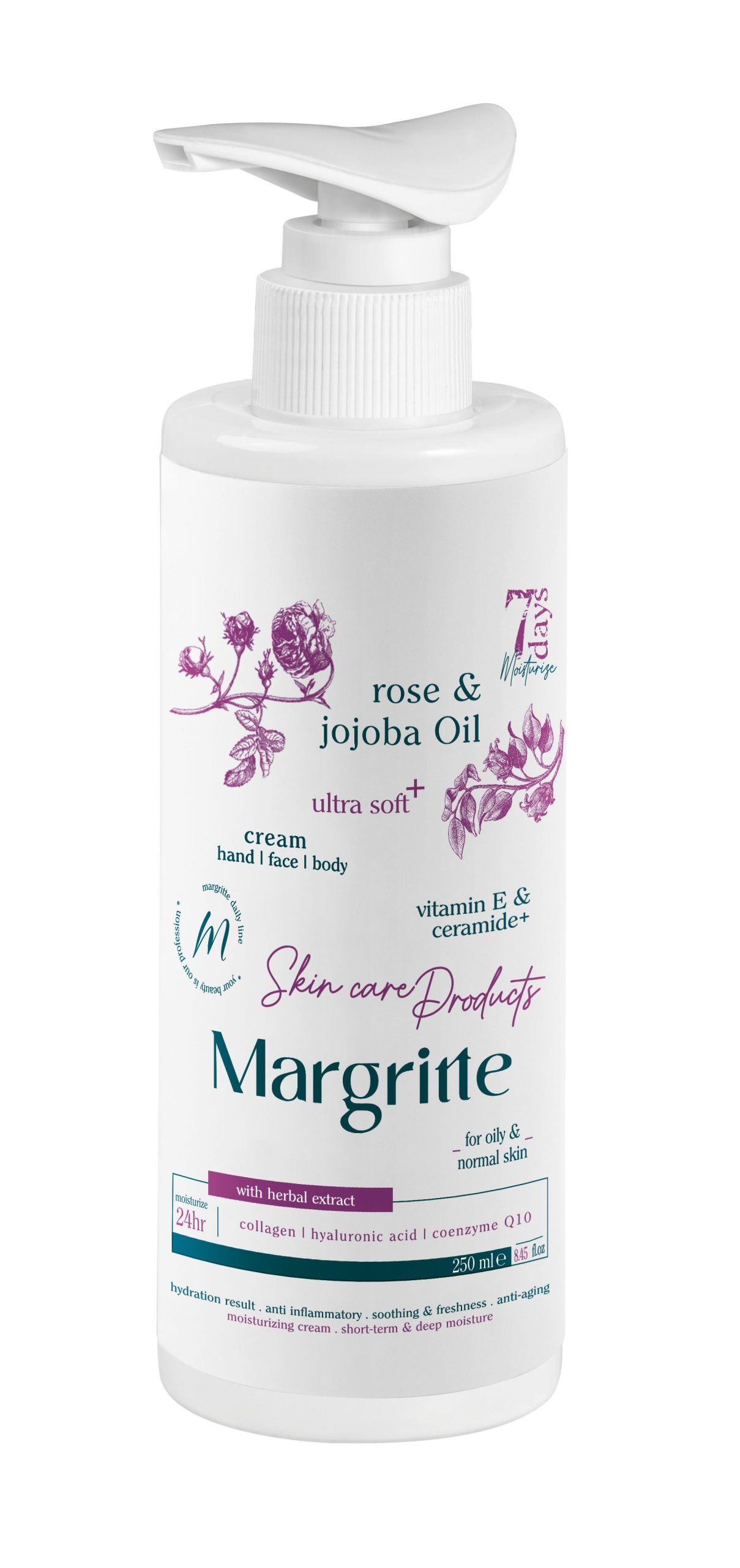 کرم مرطوب کننده آبرسان رز جوجوبا حجم ۲۵۰ میلی لیتر (پمپی) مارگریت