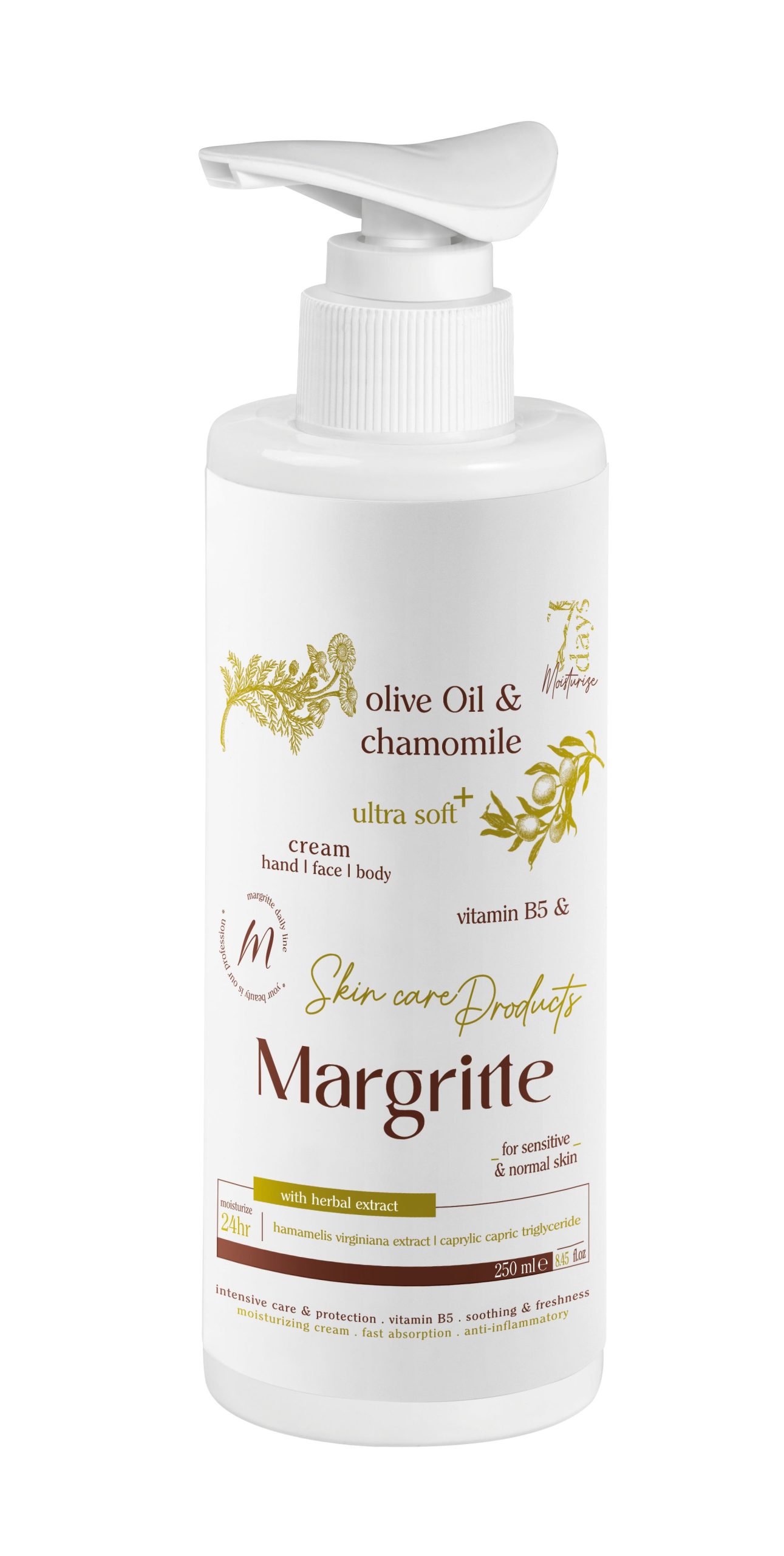 کرم مرطوب کننده آبرسان زیتون بابونه حجم ۲۵۰ میلی لیتر (پمپی) مارگریت